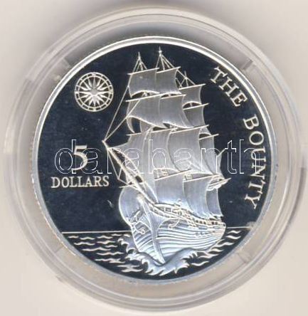 Beschreibung: Niue 1992. "Bounty-hajó" 5$ Ag T:PP