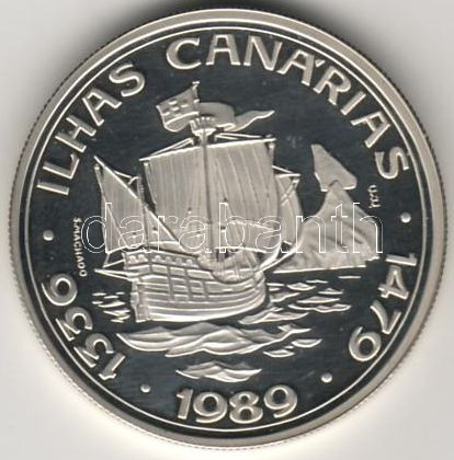 Portugália 1989. "Kanári szigetek-hajó" 100Esc Ag T:PP https://www.darabanth.com/de/61-Fernauktion/61.0/Numismatik/~189/Portugalia-1989-Kanari-szigetek-hajo-100Esc-Ag-TPP~II121978