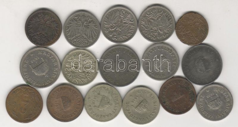 1893-1916. 16db magyar és osztrák 1,2,10,20f és heller T:2,3,4 https://www.darabanth.com/de/61-Fernauktion/61.0/Numismatik/~190/1893-1916-16db-magyar-es-osztrak-1-2-10-20f-es-heller-T2-3-4~II122207