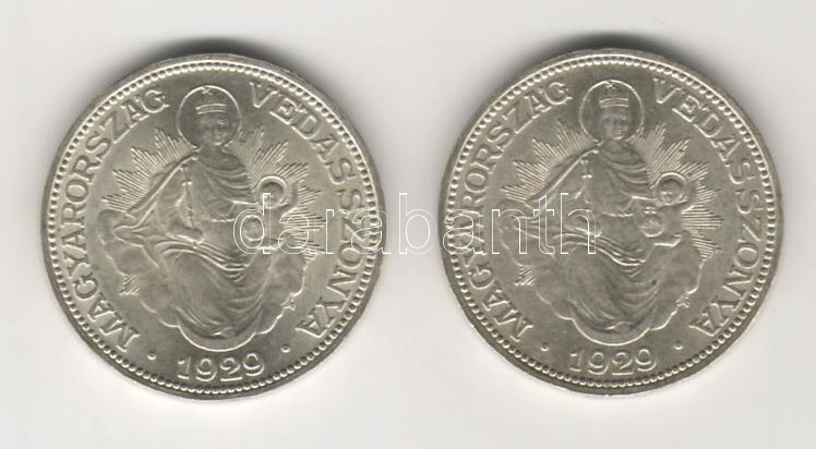 1929. 2P Ag "Madonna" (2x) T:1/2 https://www.darabanth.com/de/61-Fernauktion/61.0/Numismatik/~190/1929-2P-Ag-Madonna-2x-T12~II122242