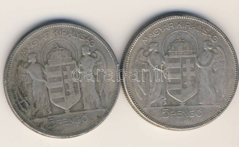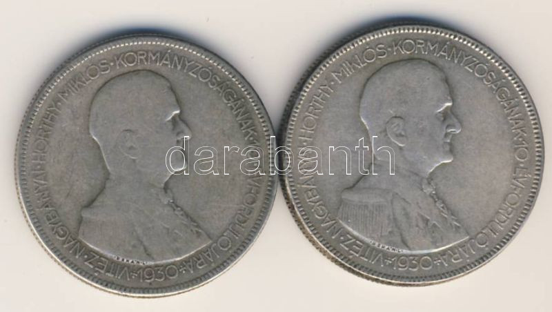 1930. 5P Ag "Horthy" (2x) T:3 https://www.darabanth.com/de/61-Fernauktion/61.0/Numismatik/~190/1930-5P-Ag-Horthy-2x-T3~II122053
