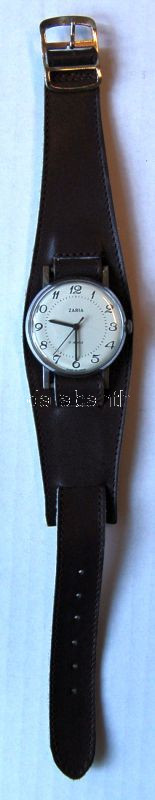 Beschreibung: Működő Zaria karóra bőrszíjjal