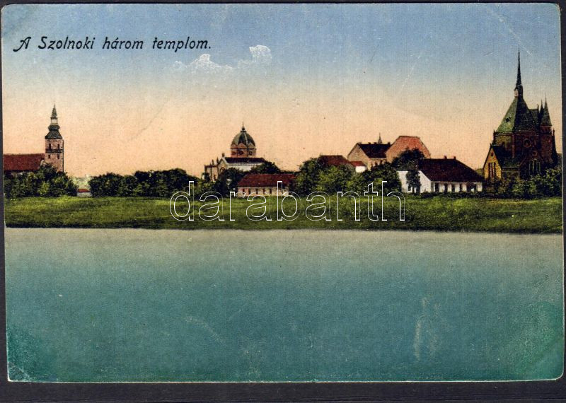 Szolnok három templom zsinagógával https://www.darabanth.com/de/62-Fernauktion/62.0/Ansichtskarten/~203/Szolnok-harom-templom-zsinagogaval~II123206