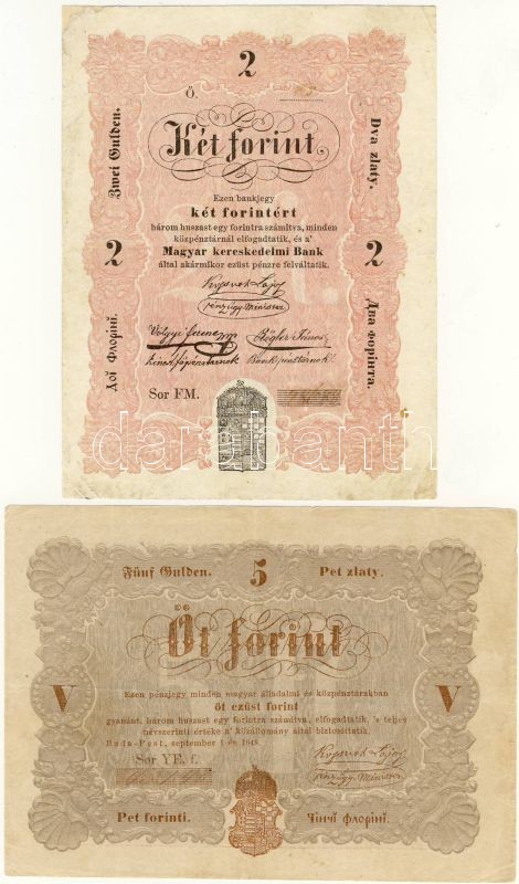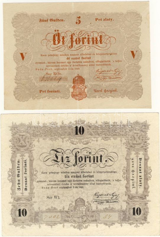 1848-49. Teljes sor 15kr,30kr,1Ft,2Ft,2Ft (fekete),5Ft 2klf szín és a román szövegben variáns,10Ft,100Ft R! T:A bankjegyek ki vannak tisztítva és részben restaurálva!