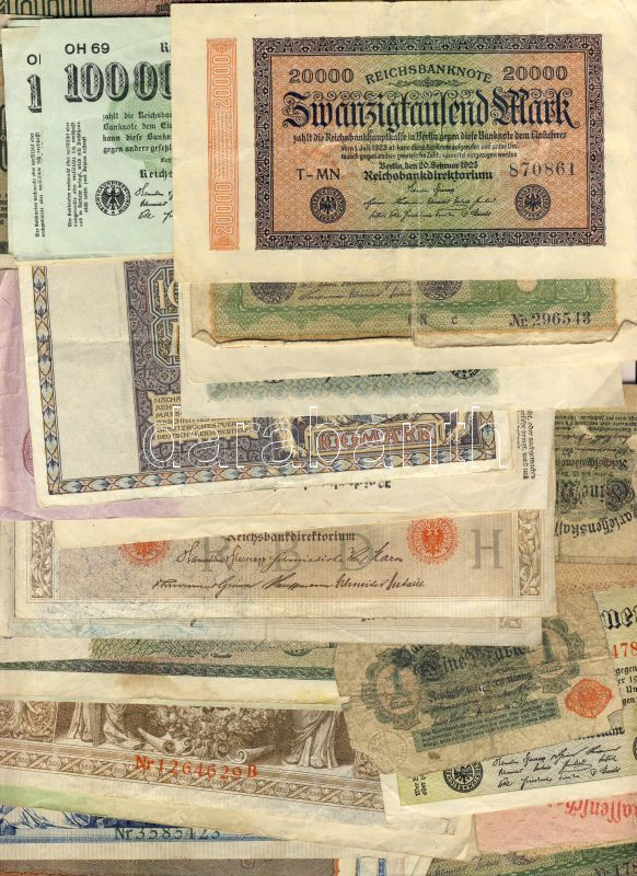 Német Birodalom 1904-1923. 84db bankjegy jobbakkal T:II,III,IV https://www.darabanth.com/de/62-Fernauktion/62.0/Numismatik/~187/Nemet-Birodalom-1904-1923-84db-bankjegy-jobbakkal-TII-III-IV~II123287