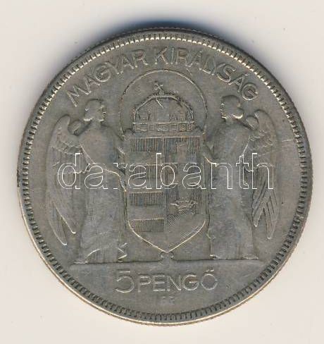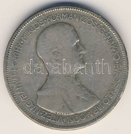 1930. 5P Ag "Horthy jobbra" T:3 https://www.darabanth.com/de/63-Fernauktion/63.0/Numismatik/~282/1930-5P-Ag-Horthy-jobbra-T3~II123406
