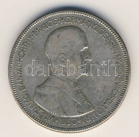 1930. 5P Ag "Horthy jobbra" T:3 https://www.darabanth.com/de/63-Fernauktion/63.0/Numismatik/~282/1930-5P-Ag-Horthy-jobbra-T3~II123407