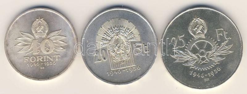 1956. 10Ft + 20Ft + 25Ft Ag "10 éves a Ft" sor T:1 https://www.darabanth.com/de/63-Fernauktion/63.0/Numismatik/~282/1956-10Ft-plus-20Ft-plus-25Ft-Ag-10-eves-a-Ft-sor-T1~II123623