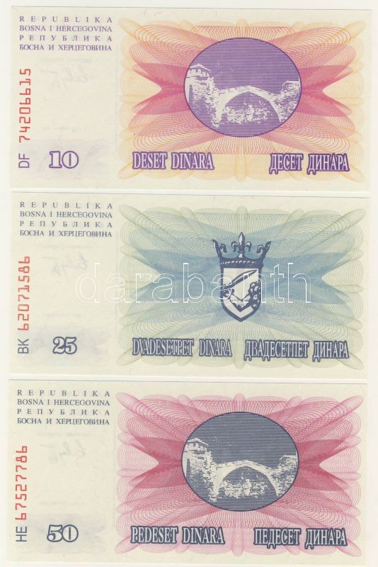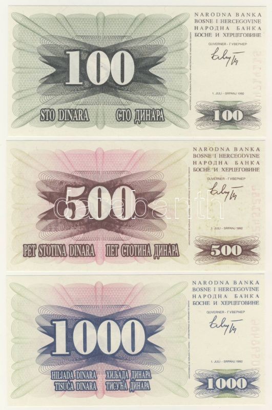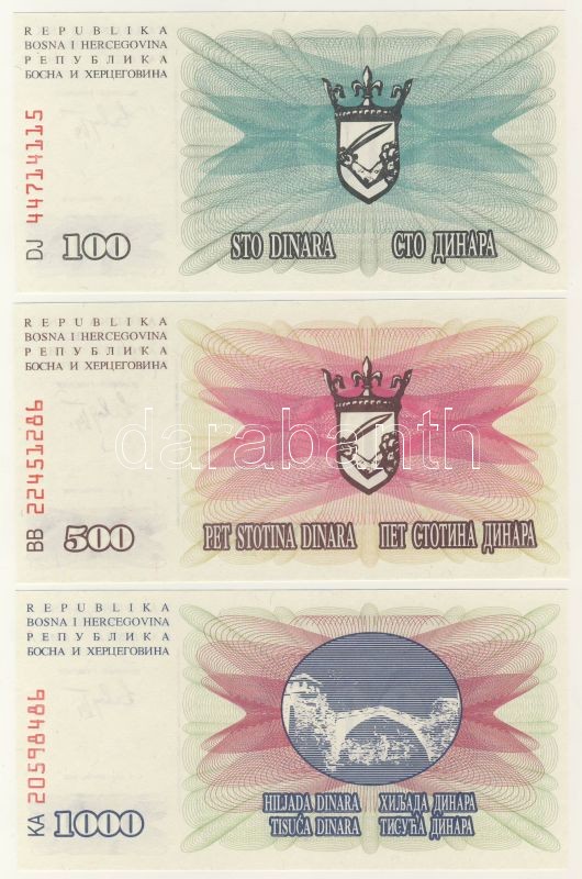 Bosznia 1992. 10-1000D 6 klf db T:I https://www.darabanth.com/de/63-Fernauktion/63.0/Numismatik/~282/Bosznia-1992-10-1000D-6-klf-db-TI~II124781