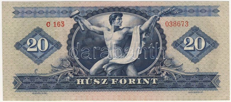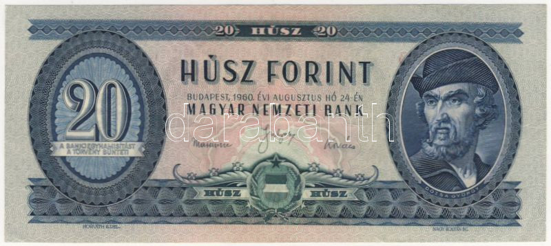 Beschreibung: 1960. 20Ft hátoldalon erősen felfelé csúszott nyomat! T:II