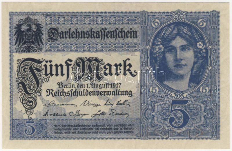 Német Birodalom 1917. 5M T:I https://www.darabanth.com/de/65-Fernauktion/65.0/Numismatik/~246/Nemet-Birodalom-1917-5M-TI~II127772