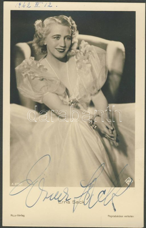Erna Sack német filmszínésznő aláírása fényképén https://www.darabanth.com/de/67-Fernauktion/67.0/Andere-Sammelgebiete/~313/Erna-Sack-nemet-filmszineszno-alairasa-fenykepen~II130482