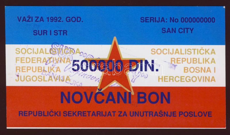 Beschreibung: Jugoszlávia/Bosznia/Banja Luka "Novcani bon" "000-ás MINTA" T:I