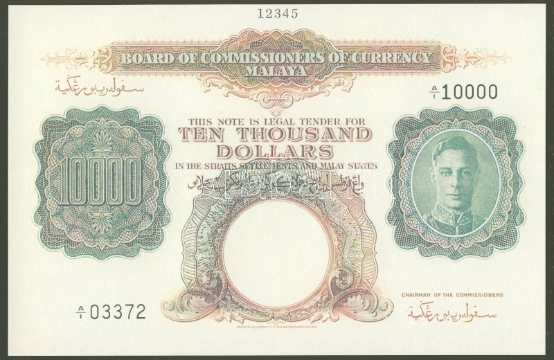 Malajzia 1942. 10.000$ egyoldali modern essay eredeti nyomólemezzel ny... https://www.darabanth.com/de/69-Fernauktion/69.0/Numismatik/~249/Malajzia-1942-10000USD-egyoldali-modern-essay-eredeti-nyomolemezzel-nyomva-TI~II138562