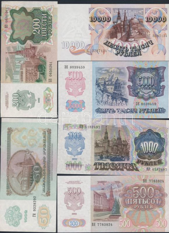 Beschreibung: Orosz Föderáció 1992. 50R,200R,500R,1000R teljes sor! + Oroszország 1992. 5000R,10.000R T:I