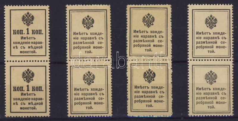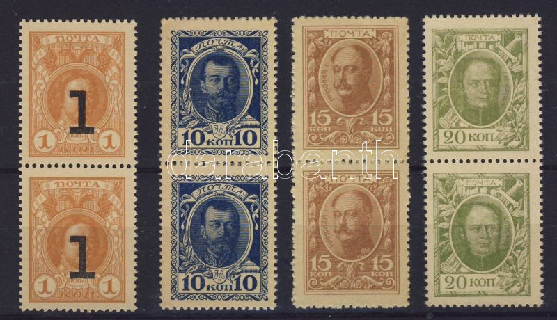 Beschreibung: Oroszország/bélyegpénz 1915. 1k,10k,15k,20k mindegyik függőleges párban T:I