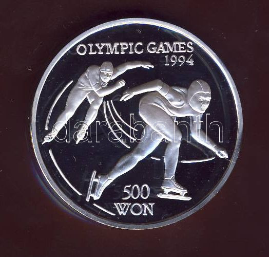 Észak-Korea 1993. 500W Ag "Olimpiai játékok-gyorskorcsolya" T:PP https://www.darabanth.com/de/69-Fernauktion/69.0/Numismatik/~257/Eszak-Korea-1993-500W-Ag-Olimpiai-jatekok-gyorskorcsolya-TPP~II138384