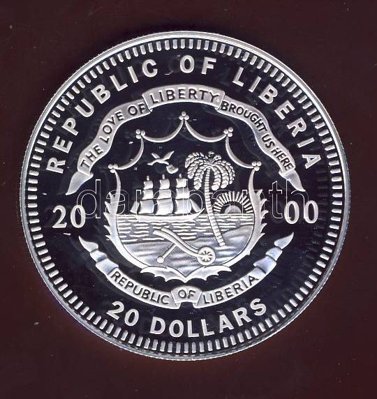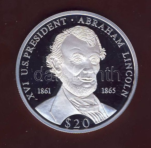 Liberia 2000. 20$ Ag "Abraham Lincoln" T:PP https://www.darabanth.com/de/69-Fernauktion/69.0/Numismatik/~257/Liberia-2000-20USD-Ag-Abraham-Lincoln-TPP~II138452