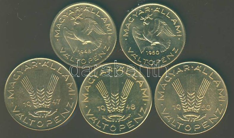 10f citromsárga 1948,1950. + 20f citromsárga 1947,1948,1950. Összesen ... https://www.darabanth.com/de/69-Fernauktion/69.0/Numismatik/~258/10f-citromsarga-1948-1950-plus-20f-citromsarga-1947-1948-1950-Osszesen-5db-TBU~II138848
