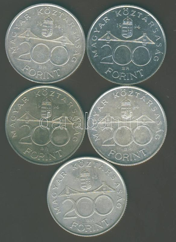 1994. 200Ft Ag "Deák" (4x) + 1995. 200Ft Ag "Deák" (1x) T:BU https://www.darabanth.com/de/69-Fernauktion/69.0/Numismatik/~258/1994-200Ft-Ag-Deak-4x-plus-1995-200Ft-Ag-Deak-1x-TBU~II137198