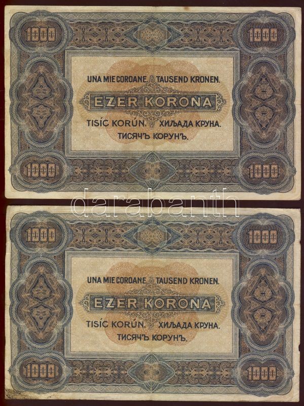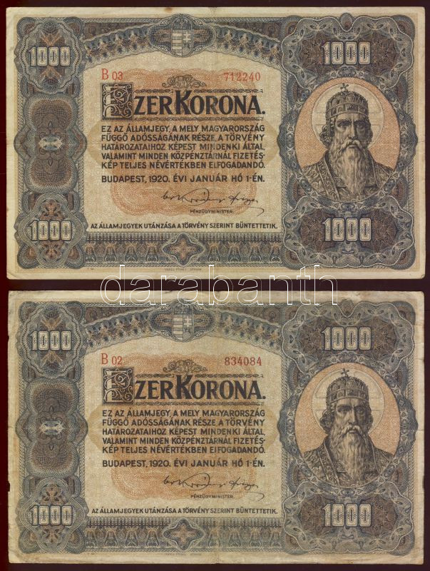 1920. 1000K 2klf variáns barna, ill. piros sor- és sorozatszámokkal T:... https://www.darabanth.com/de/69-Fernauktion/69.0/Numismatik/~265/1920-1000K-2klf-varians-barna-ill-piros-sor-es-sorozatszamokkal-T3~II135913