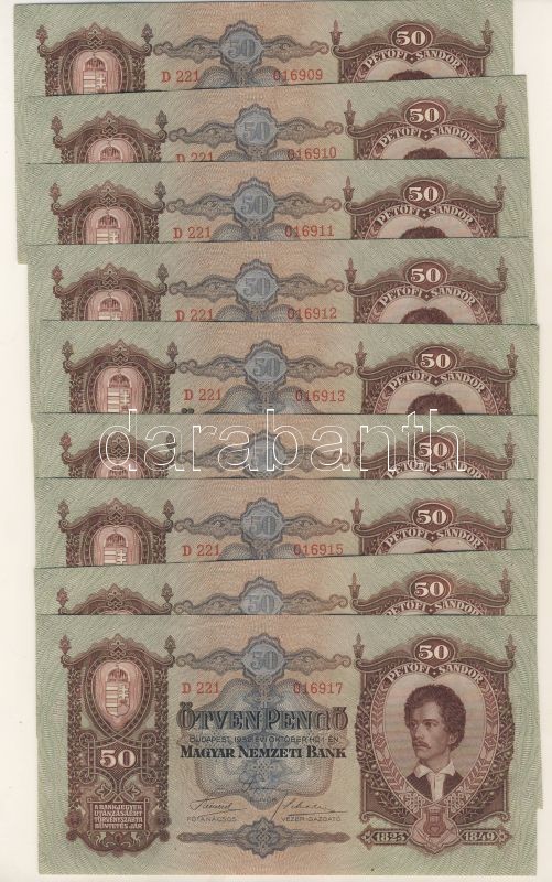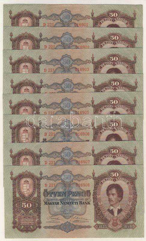 1932. 50P (17x) egymásutáni sorszámokkal T:I https://www.darabanth.com/de/69-Fernauktion/69.0/Numismatik/~265/1932-50P-17x-egymasutani-sorszamokkal-TI~II131906