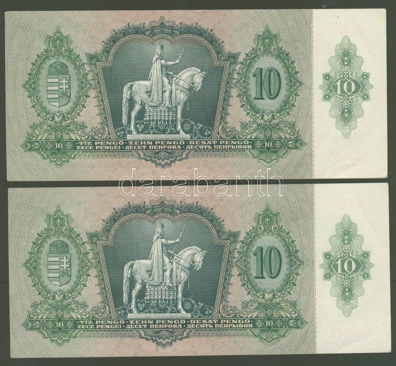 1936. 10P egymásutáni sorszámokkal T:I- https://www.darabanth.com/de/69-Fernauktion/69.0/Numismatik/~265/1936-10P-egymasutani-sorszamokkal-TI-~II137231