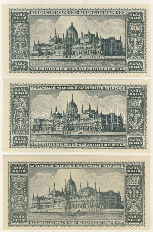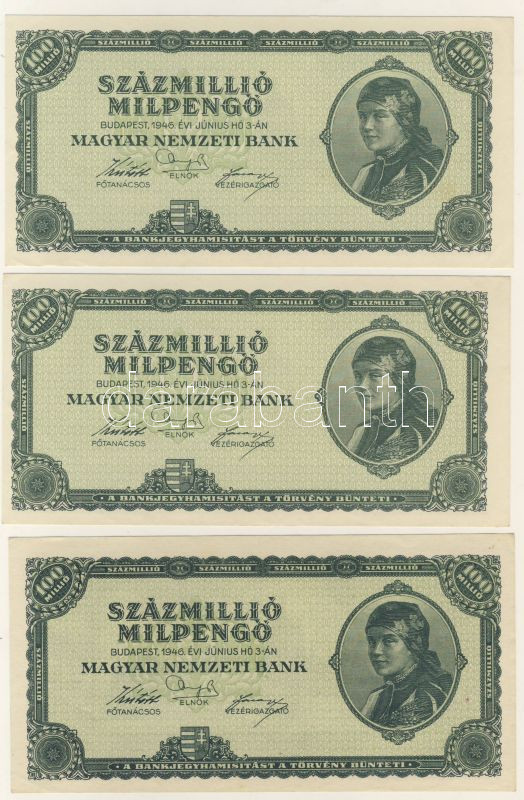 1946. 100.000.000Milp (3x) T:I,I- https://www.darabanth.com/de/69-Fernauktion/69.0/Numismatik/~265/1946-100000000Milp-3x-TI-I-~II133830