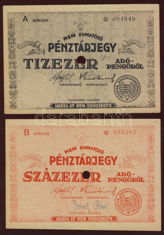 1946. Teljes pénztárjegy sor 10.000AP, 100.000AP, 1000.000AP, 10.000.0... https://www.darabanth.com/de/69-Fernauktion/69.0/Numismatik/~265/1946-Teljes-penztarjegy-sor-10000AP-100000AP-1000000AP-10000000AP-TI-IIplus~II138824