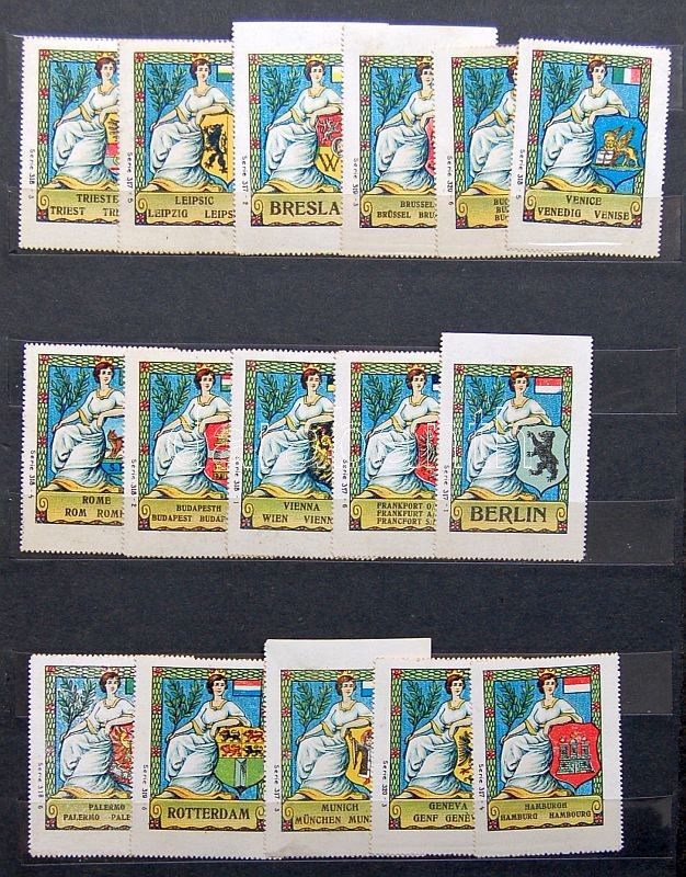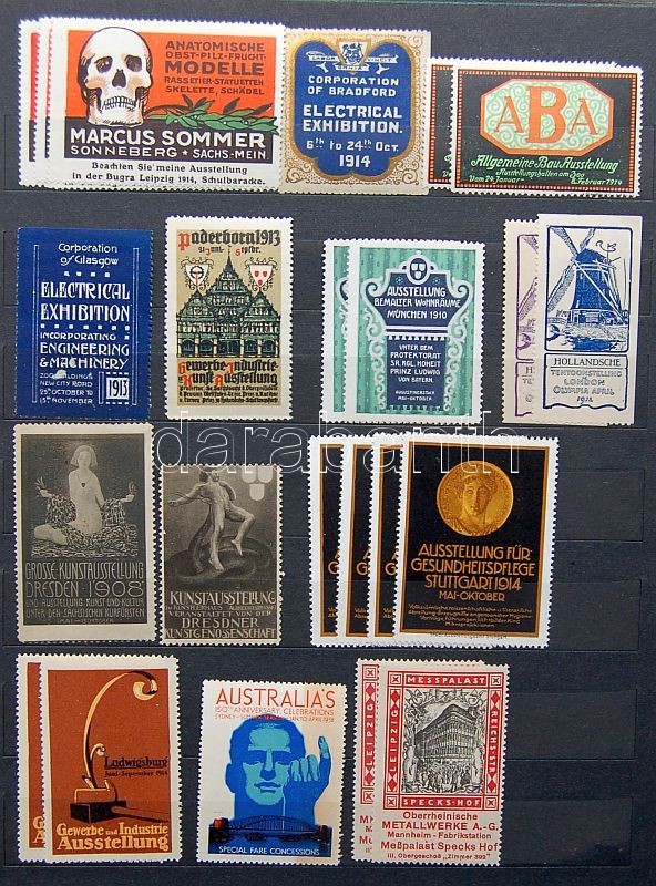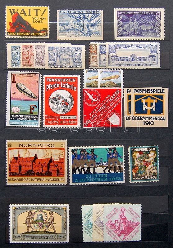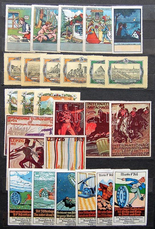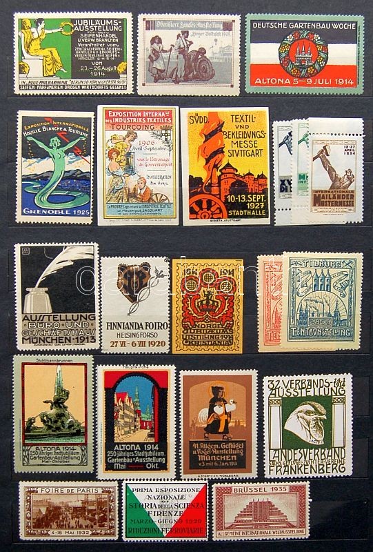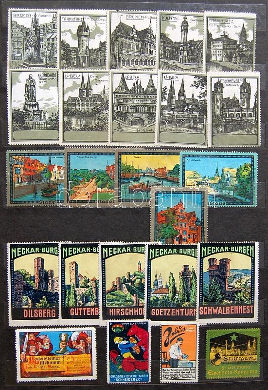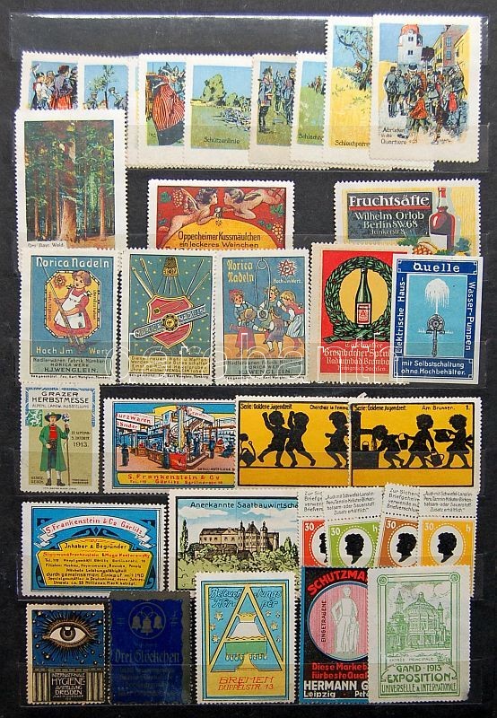 kb. 1.300 db régi német, osztrák, magyar, kevés egyéb levélzáró, reklámbélyeg sok ritkasággal, nagyrészt 1900-1920 közötti anyag / ca. 1.300 old mostly German, Austrian, Hungarian labels with a lot of rare sets