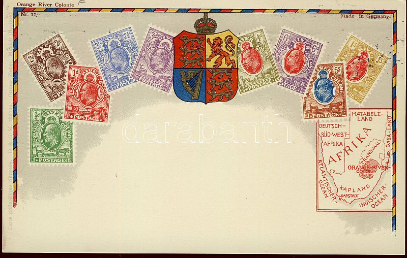 Stamps of Orange River Colony (Litho) https://www.darabanth.com/de/7-Gross-Auktion/7.1/Thematik-und-Kunstlerkarten/~1902/Stamps-of-Orange-River-Colony-Litho~II166263