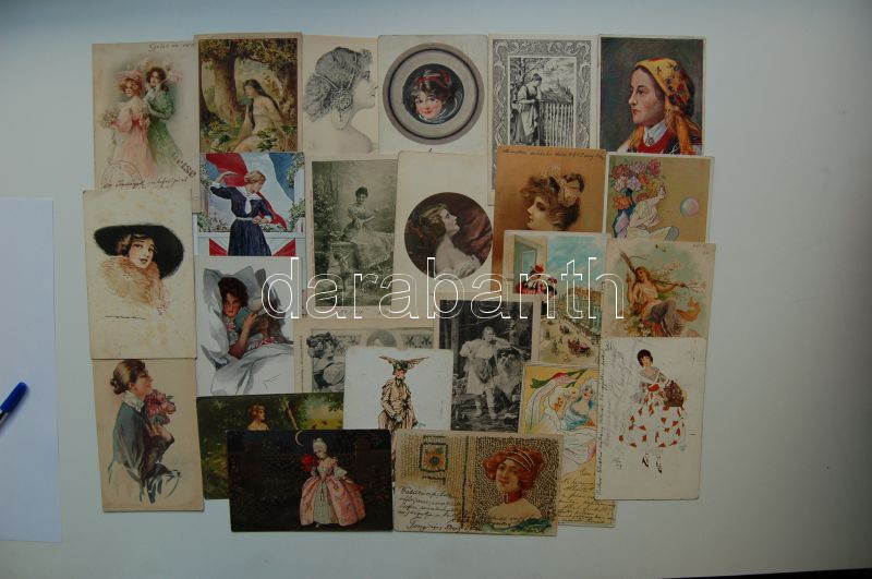 Beschreibung: Hölgyek, 300 régi képeslap közte lithók, szignós művészlapok / Ladies, 300 cards, including lithos, artist signed cards
