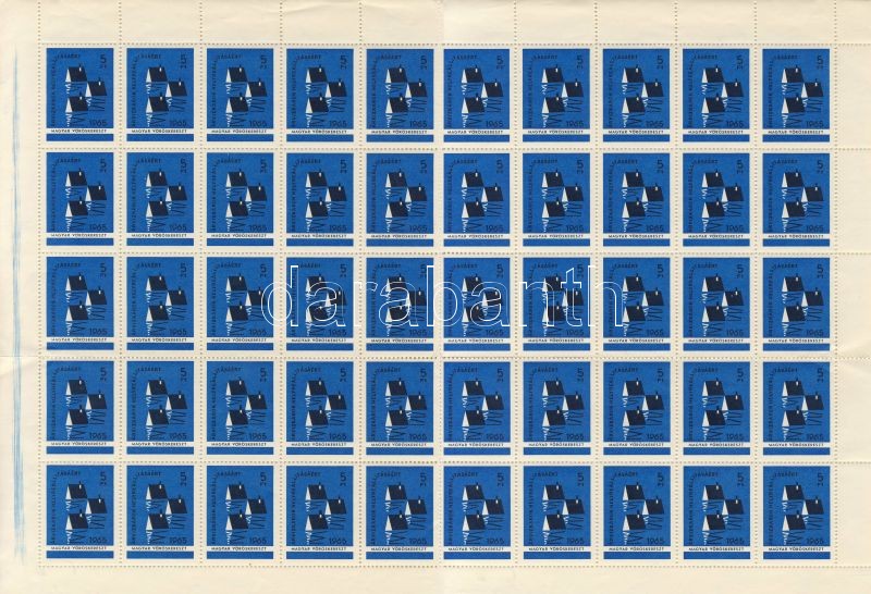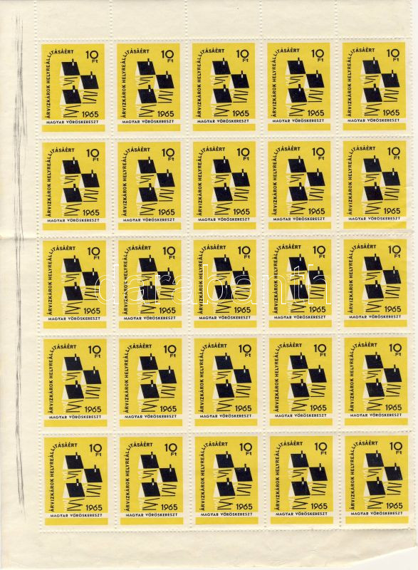 Beschreibung: 1965 Árvíz segélybélyeg 5Ft 50-es teljes ív+10Ft fél ív (25db)