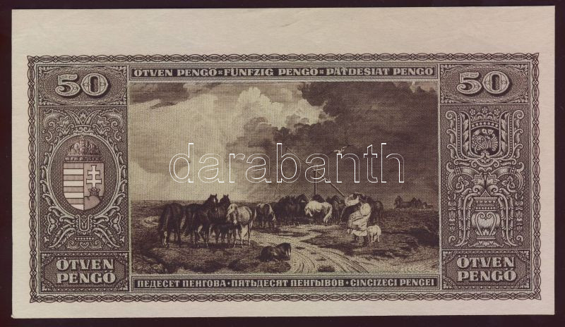 Beschreibung: 1945. 50p csak hátlapi fázis, felső ívszél T:I