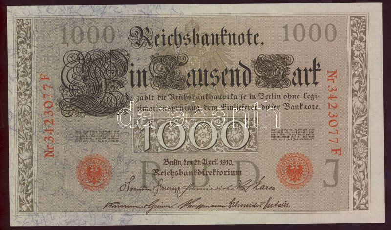 Német Birodalom/Császárság 1910. 1000M T:I https://www.darabanth.com/de/70-Fernauktion/70.0/Numismatik/~254/Nemet-BirodalomCsaszarsag-1910-1000M-TI~II140530