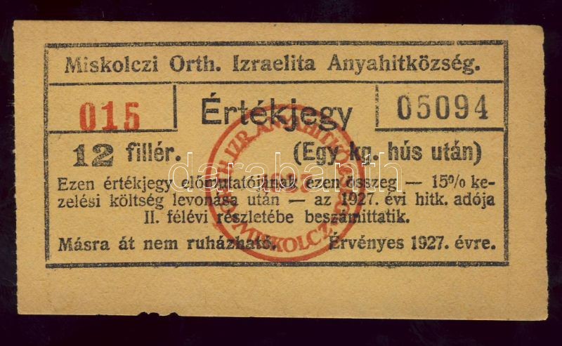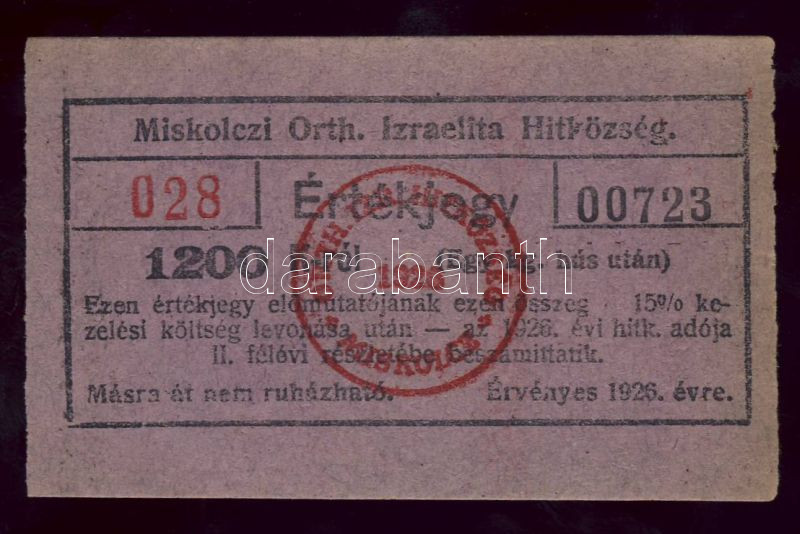 4db klf "Miskolczi Orth. Izraelita Hitközség" értékjegy az 1920-30-as ... https://www.darabanth.com/de/70-Fernauktion/70.0/Numismatik/~256/4db-klf-Miskolczi-Orth-Izraelita-Hitkozseg-ertekjegy-az-1920-30-as-evekbol~II140505