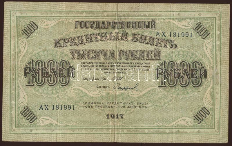 1917-20. Oroszország 5db klf bankjegy jobbakkal T:II+,II,III+ https://www.darabanth.com/de/73-Fernauktion/73.0/Numismatik/~213/1917-20-Oroszorszag-5db-klf-bankjegy-jobbakkal-TIIplus-II-IIIplus~II146501