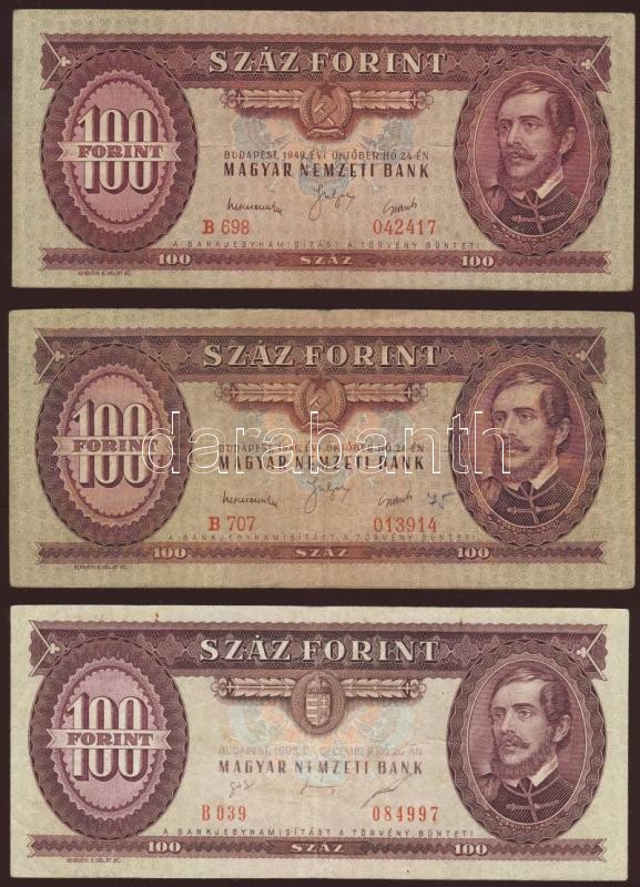 1949. 100Ft(4x) T:II/III + 1962. 10Ft T:II + 1975. 50Ft T:I- + 1995. 1... https://www.darabanth.com/de/73-Fernauktion/73.0/Numismatik/~214/1949-100Ft4x-TIIIII-plus-1962-10Ft-TII-plus-1975-50Ft-TI-plus-1995-100Ft-TII-osszesen-7db~II145709
