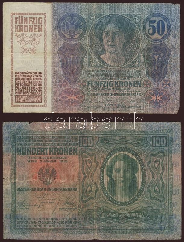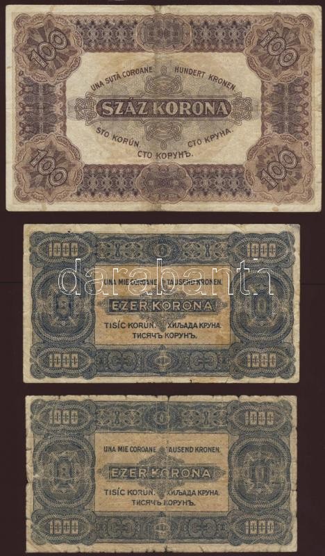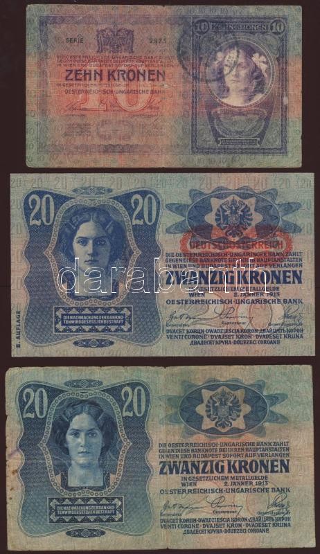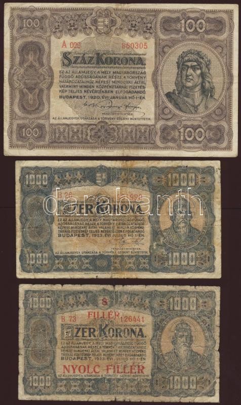 Beschreibung: Kis korona tétel 1902.-1923. benne román ellenbélyegzők, cseh ellenbélyeg, 8f fny 8klf bankjegy T:II,III, III/IV, IV