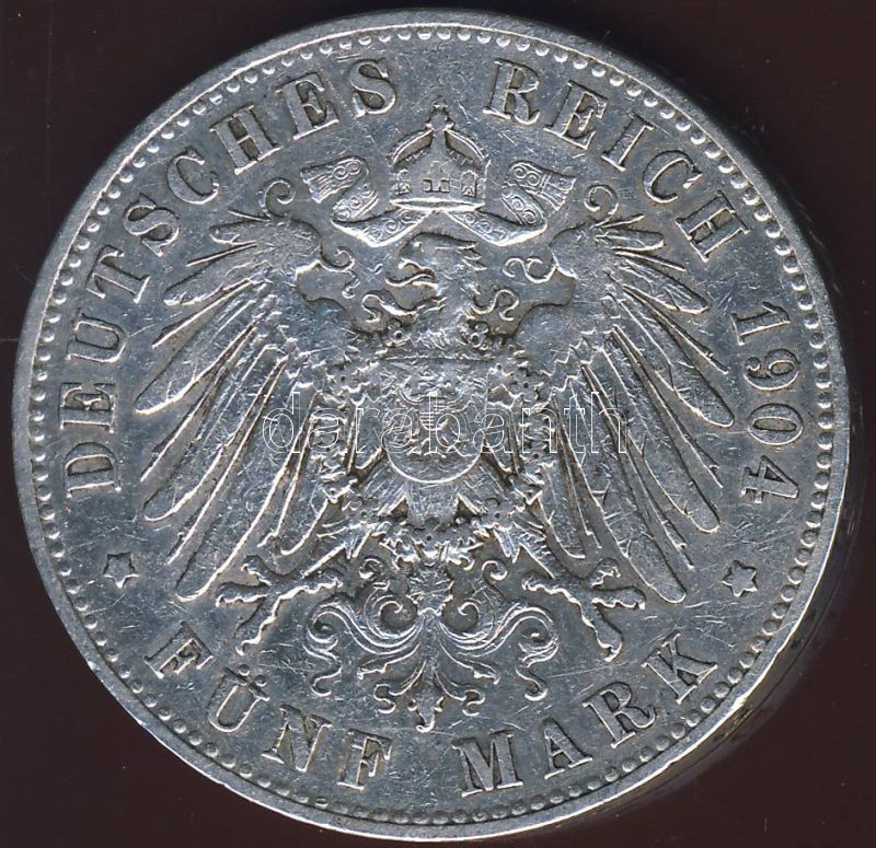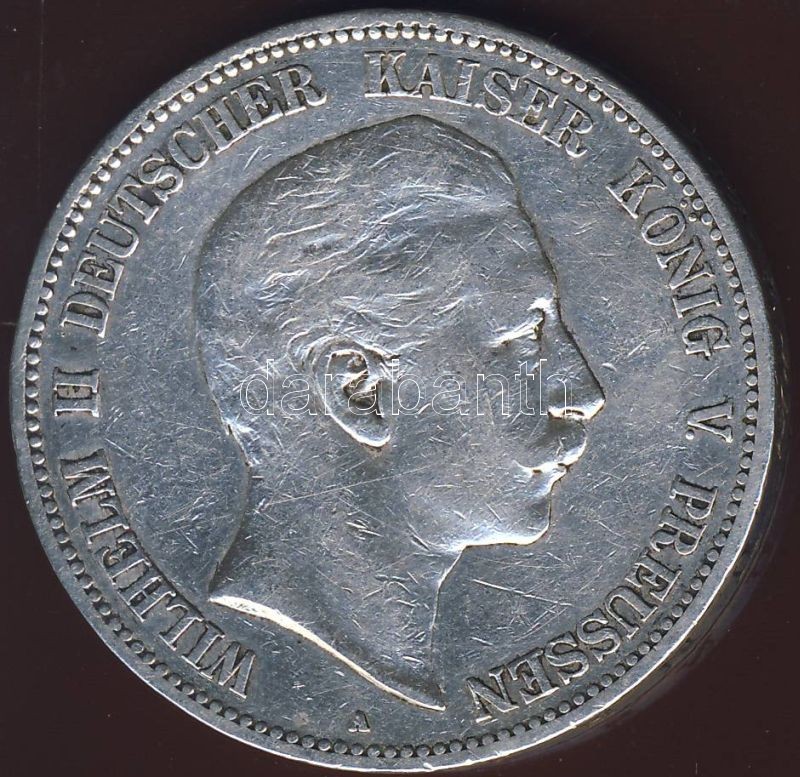 Német Császárság/Poroszország 1904 5M Ag T:3 https://www.darabanth.com/de/73-Fernauktion/73.0/Numismatik/~217/Nemet-CsaszarsagPoroszorszag-1904-5M-Ag-T3~II146341