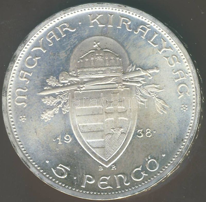 1938. 5P Ag "Szt. István" T:1 ! https://www.darabanth.com/de/73-Fernauktion/73.0/Numismatik/~220/1938-5P-Ag-Szt-Istvan-T1-~II144445