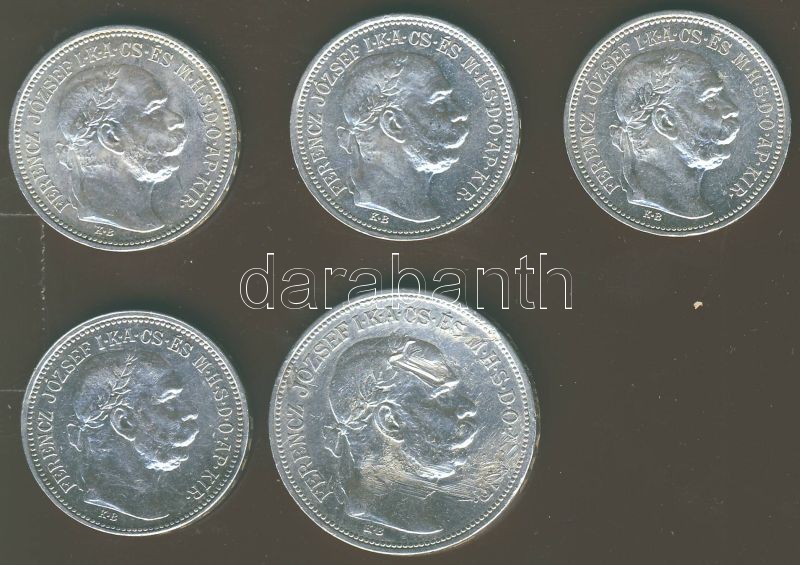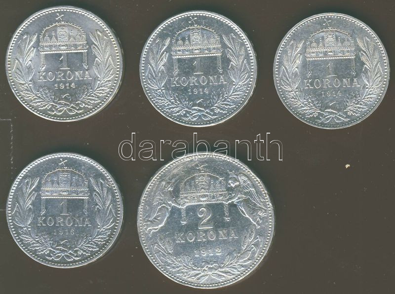 Beschreibung: 1K Ag 1914.(3x) T:1,1/2 + 1915.(1x) T:1/2 + 1912. 2K Ag (1x) T:2/3 összesen 5db