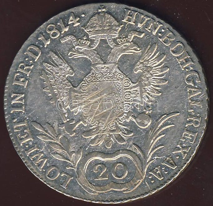 Ausztria/magyar verdejel 1814G 20Kr Ag II.Ferenc T:2+/3+ https://www.darabanth.com/de/73-Fernauktion/73.0/Numismatik/~220/Ausztriamagyar-verdejel-1814G-20Kr-Ag-IIFerenc-T2plus3plus~II146425