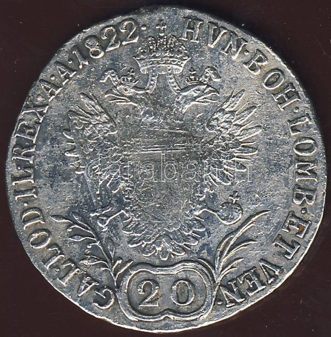 Ausztria/magyar verdejel 1822E 20Kr Ag II.Ferenc T:3/4+ lapkahiba https://www.darabanth.com/de/73-Fernauktion/73.0/Numismatik/~220/Ausztriamagyar-verdejel-1822E-20Kr-Ag-IIFerenc-T34plus-lapkahiba~II146409