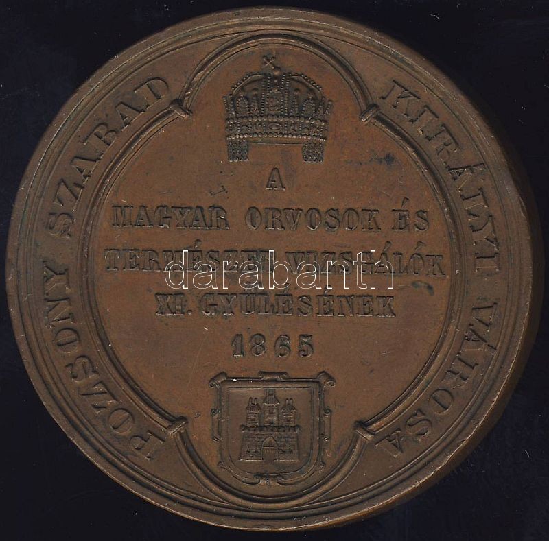 1865. "Pozsony-Magyar Orvosok és Természetvizsgálók..." Br plakett szi... https://www.darabanth.com/de/73-Fernauktion/73.0/Numismatik/~221/1865-Pozsony-Magyar-Orvosok-es-Termeszetvizsgalok-Br-plakett-szign-Seidan-T3plus-k-ph~II145640