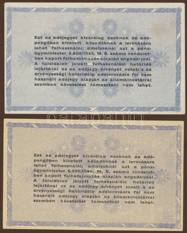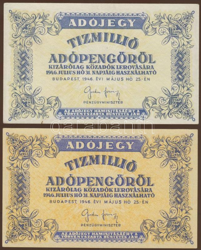 Beschreibung: 1946. 10.000.000AP 2klf variáns: barnás-fehér papíron, vízjeles, hátlapi címer fordított + v.j. nélkül, fehér papíron T:II+