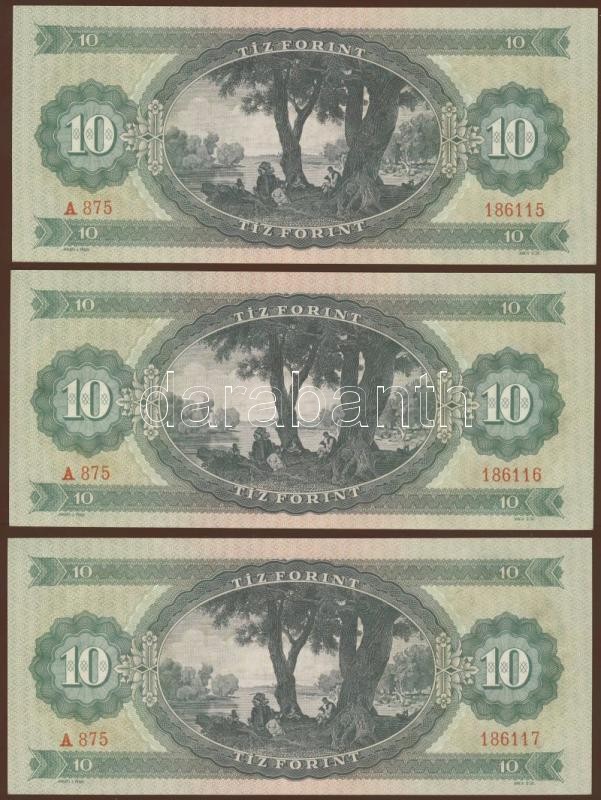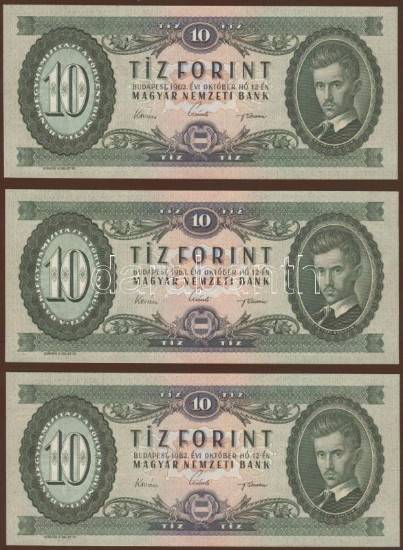 1962. 10Ft (3x) egymásutáni sorszámmal T:I https://www.darabanth.com/de/74-Fernauktion/74.0/Numismatik/~274/1962-10Ft-3x-egymasutani-sorszammal-TI~II148444