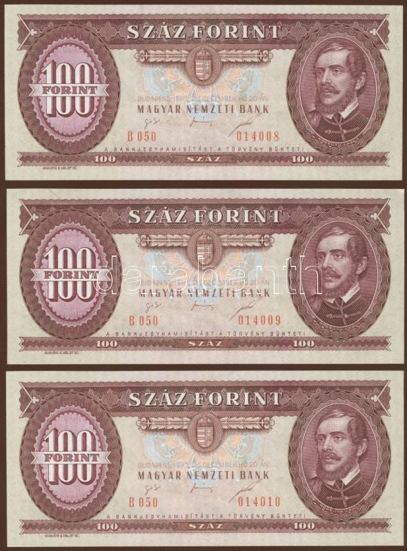 1995. 100Ft (3x) egymásutáni sorszámmal T:I https://www.darabanth.com/de/74-Fernauktion/74.0/Numismatik/~274/1995-100Ft-3x-egymasutani-sorszammal-TI~II148438