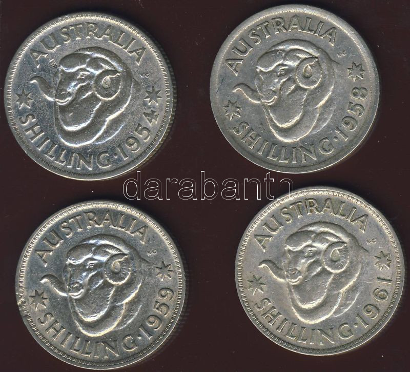 Ausztrália 1954-61. 1Sh Ag 4klf db T:2,2/3 https://www.darabanth.com/de/74-Fernauktion/74.0/Numismatik/~279/Ausztralia-1954-61-1Sh-Ag-4klf-db-T2-23~II147319