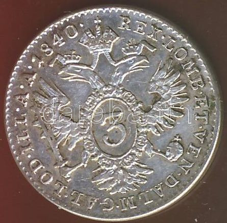 Ausztria 1840A 3Kr Ag T:2/3+ https://www.darabanth.com/de/74-Fernauktion/74.0/Numismatik/~279/Ausztria-1840A-3Kr-Ag-T23plus~II147861
